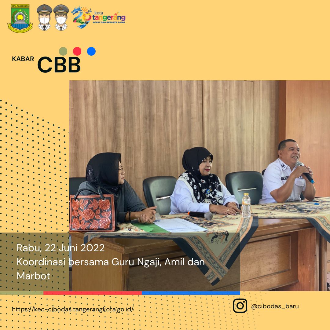 Kegiatan di kelurahan cibodas baru pagi ini Rabu 22, Juni 2022 di awali dengan koordinasi bersama guru ngaji, amil dan marbot yang di pimpin langsung oleh bapak lurah cibodas baru di dampingi kasi kemasyarakatan.